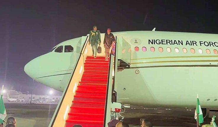 The presidential spokesman stated the president’s plane departed from the presidential wing of the Murtala Mohammed Worldwide Airport in Lagos at about 6:44pm.