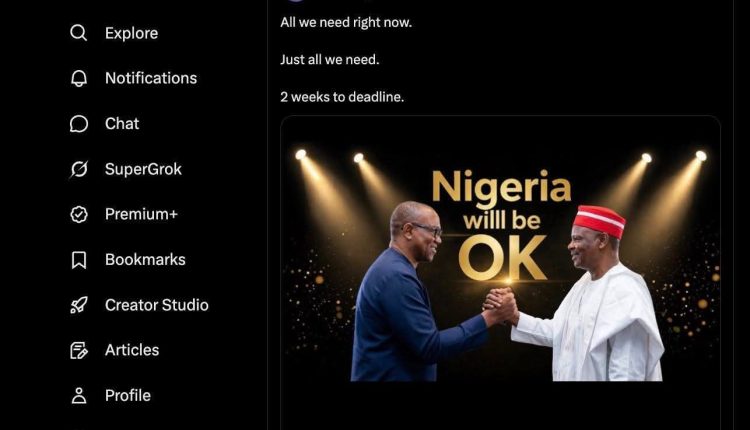 The post featured a photo of Obi shaking hands with Kwankwaso, with the caption: “Nigeria will be OK.”