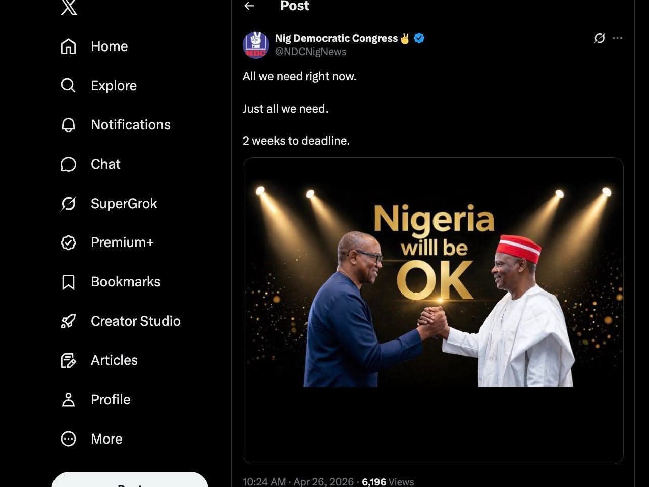“All we need right now. Just all we need. 2 weeks to the deadline,” the NDC wrote.