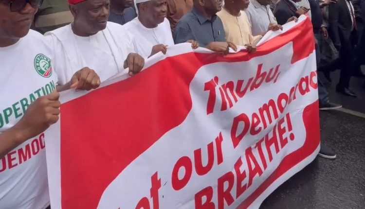 Leaders and members of the African Democratic Congress (ADC) staged a big protest in Abuja on Wednesday, condemning choices by the Impartial Nationwide Electoral Fee (INEC), which they declare undermine democracy and intervene within the celebration’s inside affairs.
